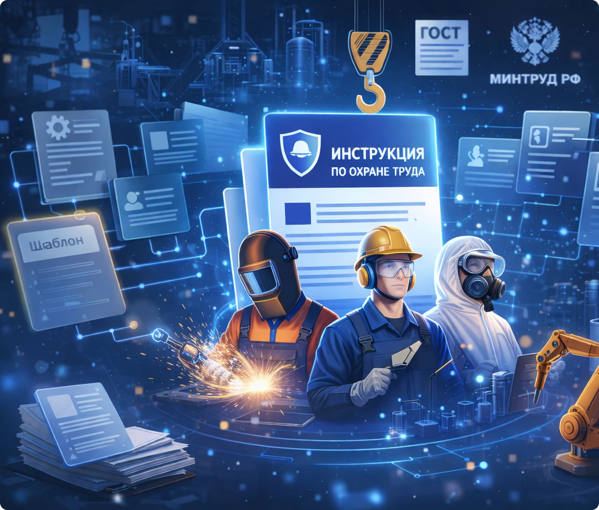 Сервис генерирует персонализированные инструкции, учитывая выбранную профессию (например, сварщик, машинист, оператор оборудования), конкретные виды работ (монтаж, ремонт, эксплуатация) и используемое оборудование (краны, станки, химические установки). Всё строго соответствует российским нормам ОТ и ПБ — ГОСТам, Приказам Минтруда, Ростехнадзора и отраслевым стандартам.